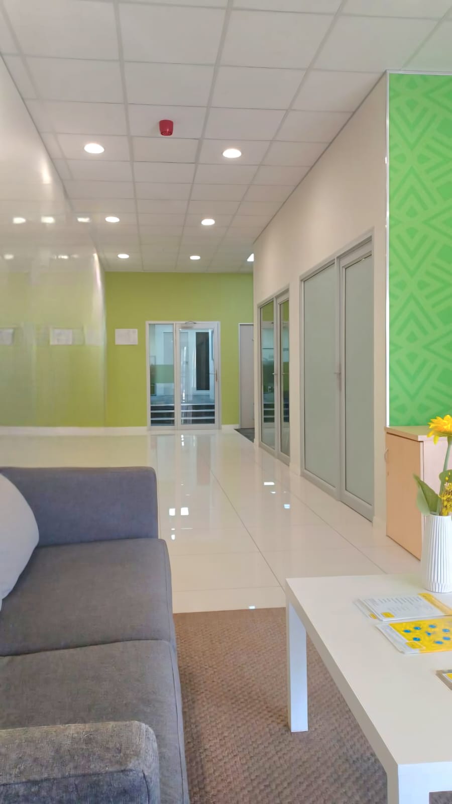 The property features approximately 45 sqm of floor space and comes fully furnished, including desks, filing drawers, and office chairs—allowing for immediate occupation.